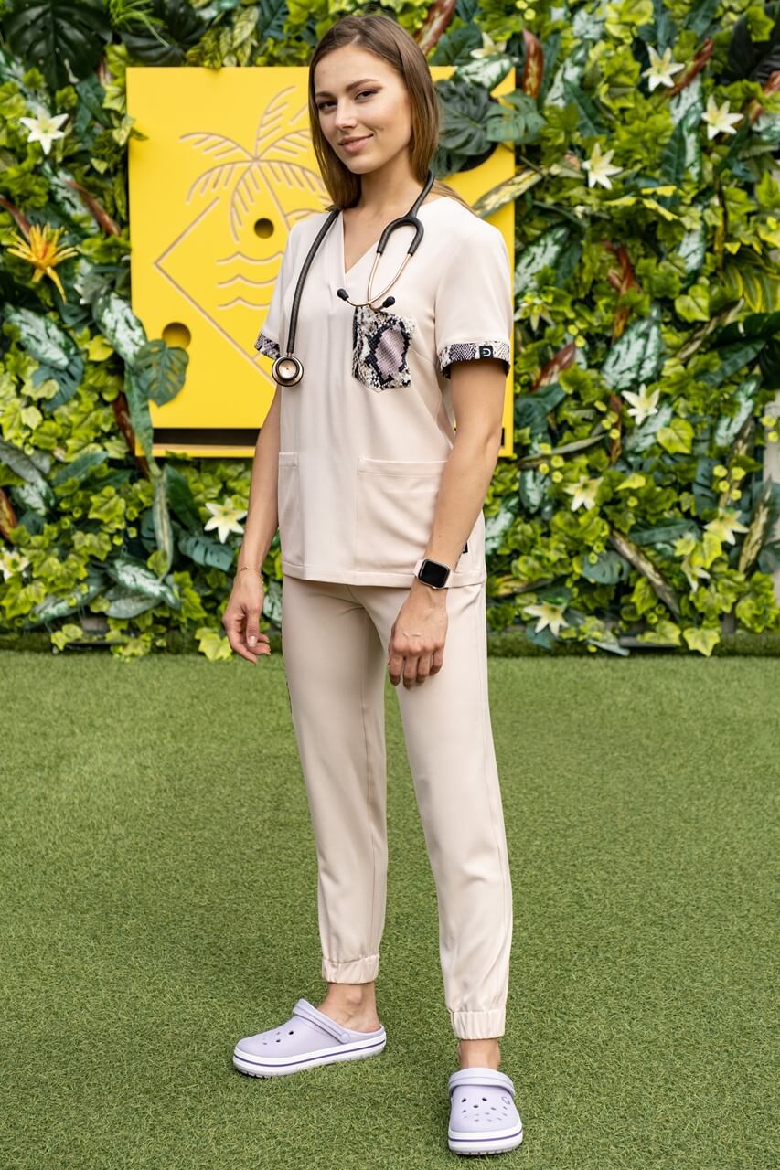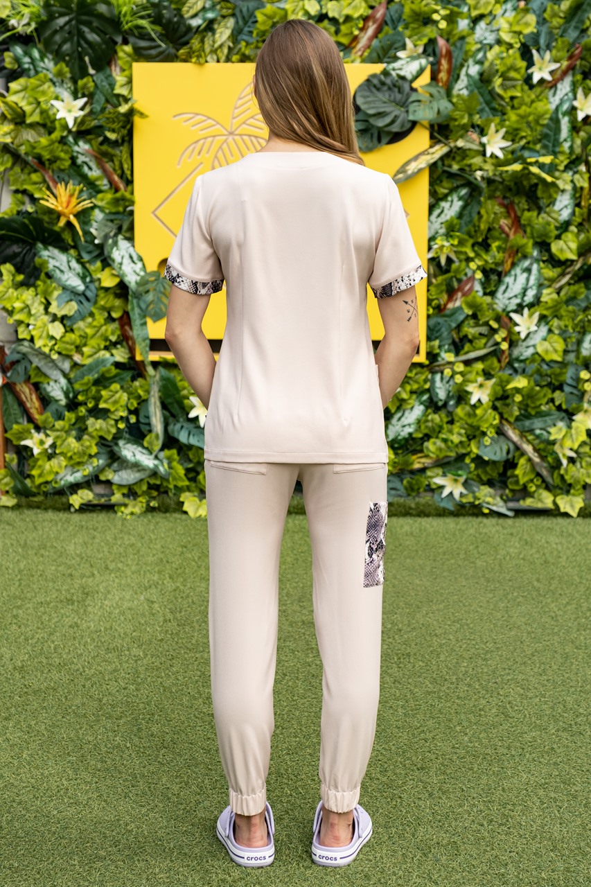 Wygodna, elastyczna, przewiewna tkanina. Świetnie układa się na ciele i nie ogranicza ruchów. Materiał jest szybkoschnący i łatwo się prasuje.