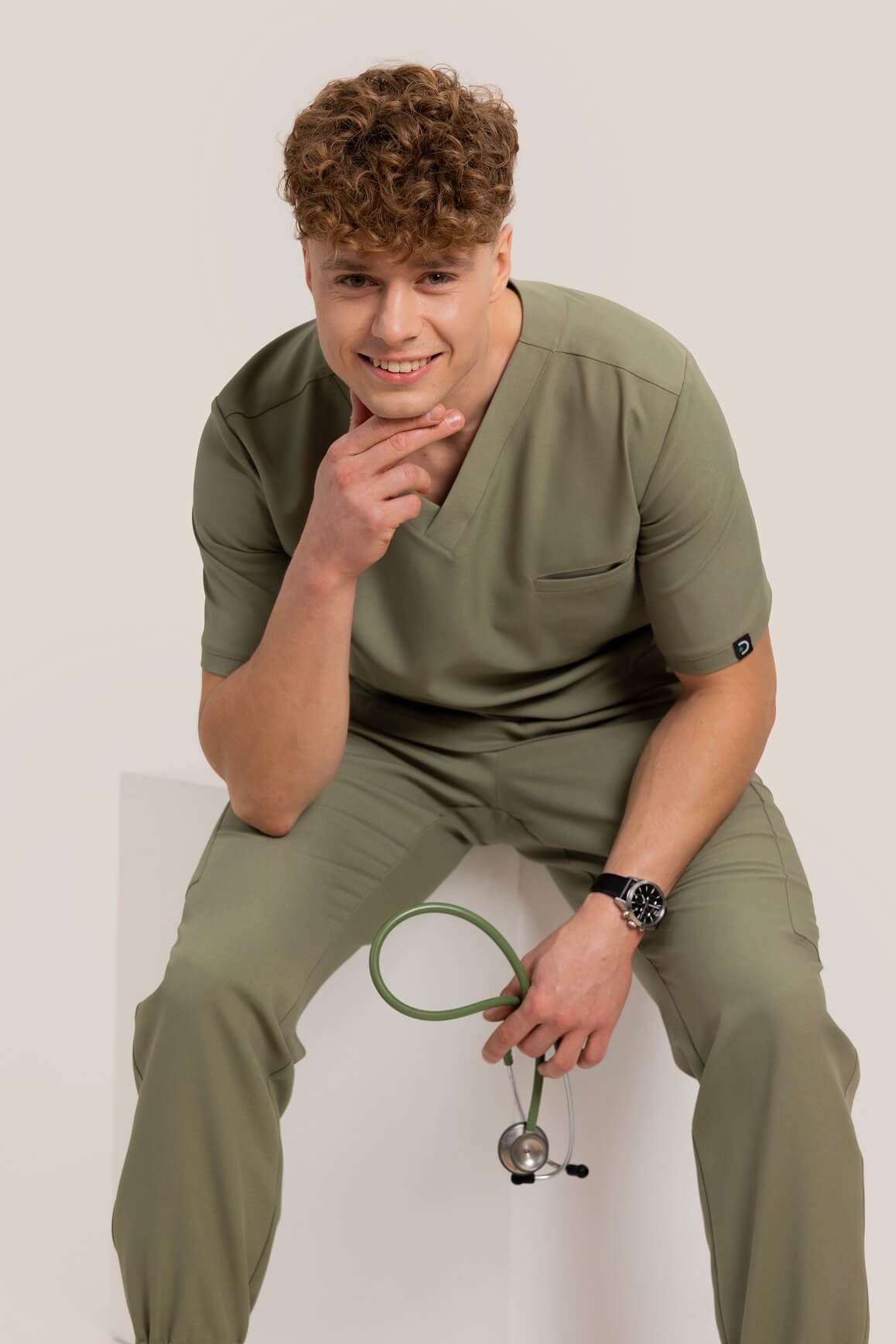 Bluza medyczna męska – MILANO – Oliwka Basic