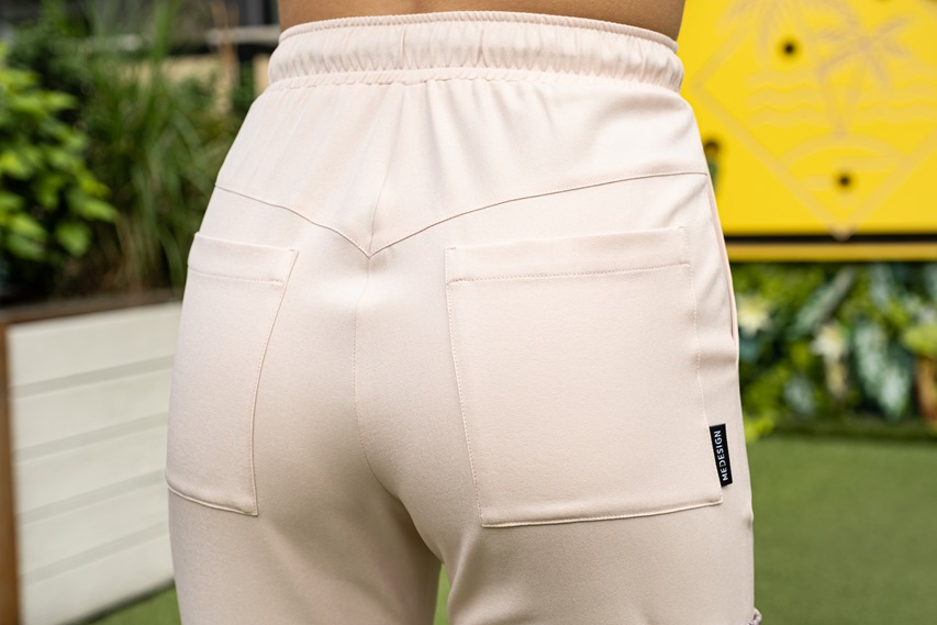 Spodnie posiadają dwie przednie oraz dwie tylne kieszenie.